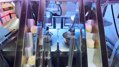 粉面机器人集储存、制作、熬煮、浇头到出餐于一体,出品的球形面由千玺机器人集团有限公司自主研发,连续下单时,出餐效率可达120份/时。