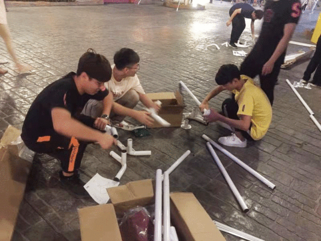 每晚9点赶到华侨城外摆现场搭建帐篷、运送物资等等。30号晚上,别人正在回家或旅行的路上,而门店个别伙伴一直忙碌到了凌晨四点。